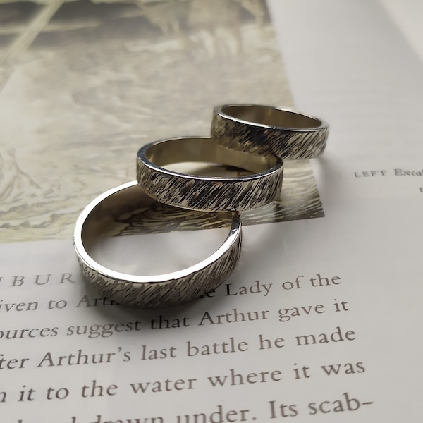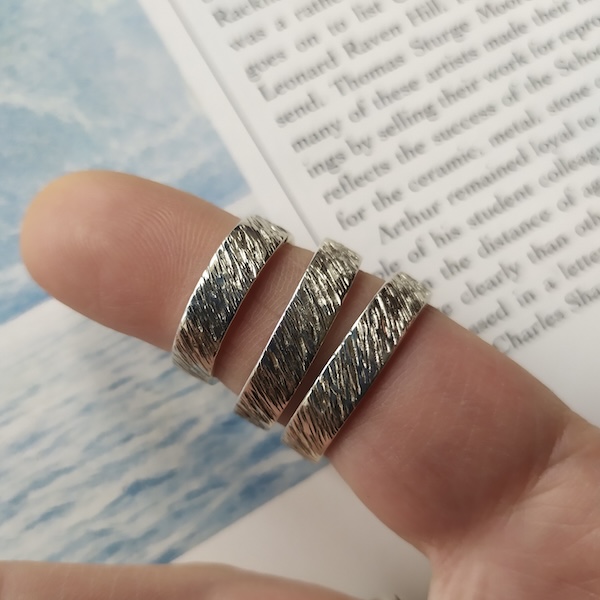 Anneau texturé avec un motif évoquant les clapotis sur l’océan. La texture est réalisée à la main, et donc varie un peu selon les modèles. Les photos ne sont donc pas contractuelles.