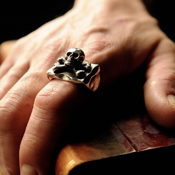 La forme de la base de la bague est un rappel à un parchemin, une carte aux trésors de pirate ou un Jolly Roger.